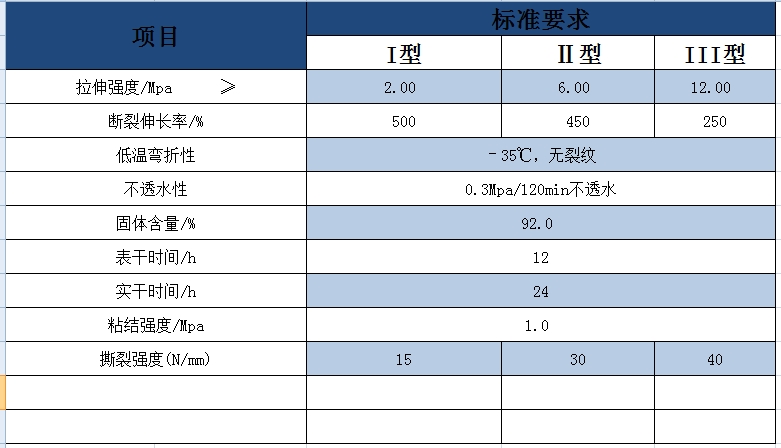 2、粘結(jié)力強、延伸性好、抗拉強度高,涂膜密實、無氣泡、無針孔。